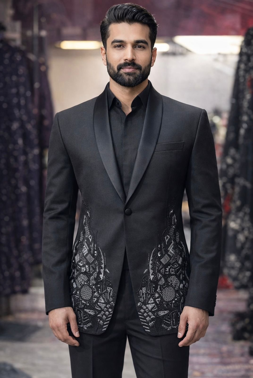 Black Partywear Suit with Beads & Embroidery